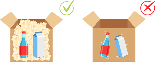 To prevent product breakage during delivery, avoid leaving gaps between products and packaging. Fill any gaps with newspaper, bubble wrap, or towels to prevent movement and damage.