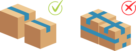 Avoid joining multiple package boxes with tape or string as it may cause damage or separation during shipment.