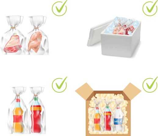 Ensure your products are packed appropriately to avoid rips, leakages, or odor dispersion. Follow these steps for frozen food or seafood: