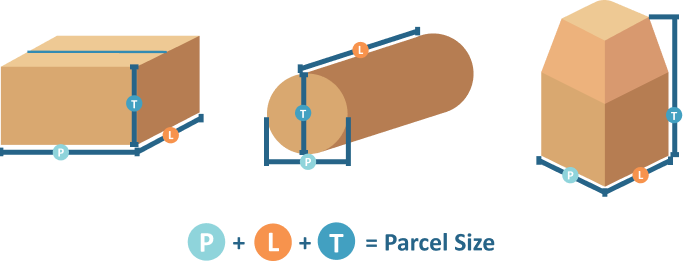 小包および/または貨物の長さ、幅、高さの3つの寸法の合計をセンチメート (cm)で測定してください。